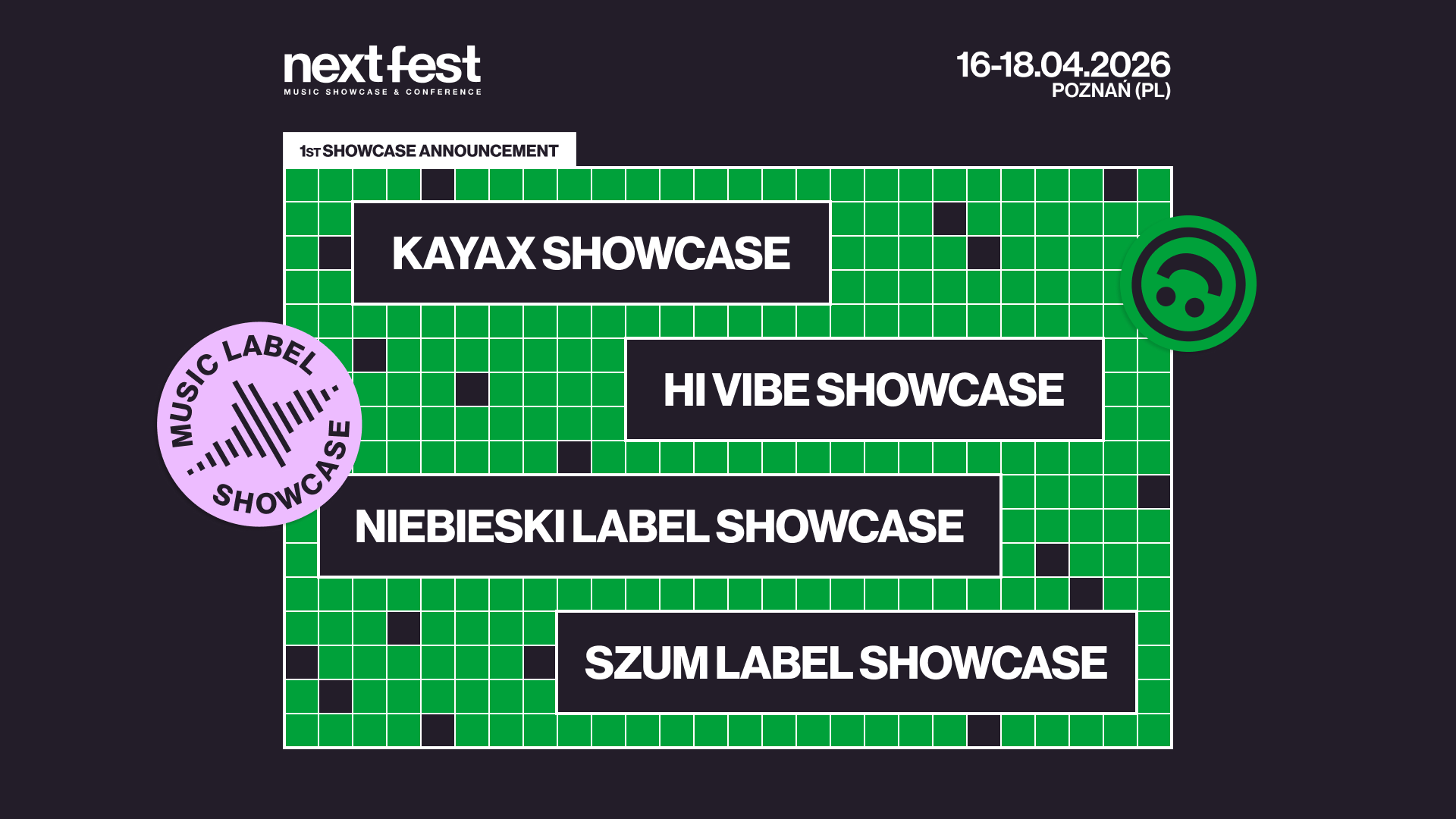 Program NEXT FEST Music Showcase & Conference znów się zagęszcza. Do festiwalu dołączają pierwsze showcase’y wytwórni, agencji i kolektywów – kuratorskie przeglądy w formule „box in the box”. Hi Vibe, Kayax, Niebieski Label i SZUM zapraszają na swoje sceny między 16 a 18 kwietnia w Poznaniu. Szczegóły na www.nextfest.pl.